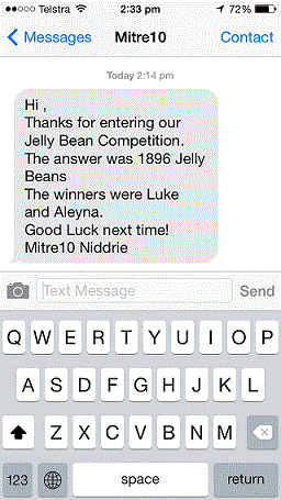 Katrina, the Mitre 10 Account Manager who came for a site visit noticed that their in-store promotion could be performed better if they gave the option to text-in to guess.